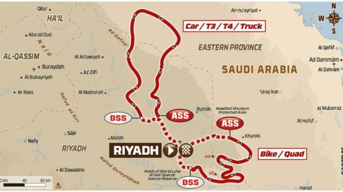 Pour cette cinquième étape, les motos et les quads emprunteront des parcours différents de leurs homologues à quatre roues. Le tracé sera toutefois similaire puisque l’ensemble des concurrents fera une boucle autour de Riyadh. La spéciale s’étale sur 345 km et pour les motos et 421 km pour les autos. Les pistes de terre et de cailloux du début de la journée tireront sur les bras des motards, mais il leur faudra garder un maximum d’énergie pour la longue portion de dunes de près de 80 kilomètres. Du vrai franchissement sur toute la fin de l’étape, voilà qui peut faire de belles différences.