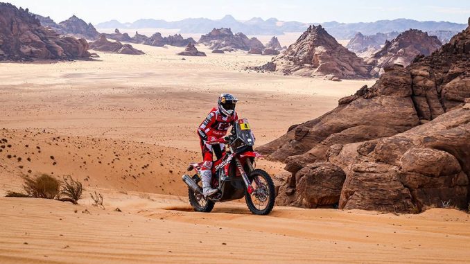 C’est une étape 6 très raccourcie du Dakar motos qui s’est tenue à Riyad. Achevée au bout de 101 kilomètres (sur 620 prévus) pour des raisons de sécurité, ce secteur voit un nouveau triomphe de Daniel Sanders. L’Australien pointait en tête au moment de l’arrêt de la course en raison d’une piste endommagée par le passage des quatre roues et surtout des camions, la veille et des fortes pluies de ces dernières heures rendant le parcours dangereux et impraticable !