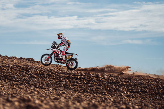 Aaron Maré : « The stage today was cancelled at the refuel point as it was really torn off and dangerous for the riders. The rocks were all over the place after the cars and trucks went on the route yesterday. It was a good call by the organizers to stop the stage. I took it easy on the fast paced track and am happy to be back with the team. We can now enjoy the rest day, and start again on stage 7. »