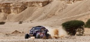 For this second loop around Riyadh, the Dakar headed south east to propose the stage motorbikes raced yesterday. With numerous tracks that have been left on the ground yesterday, this 6th stage was announced difficult with navigation. It started on a very fast terrain with many « off tracks » sections where it was important to follow the right capes indicated in the roadbook.
