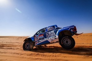 De Mevius won one stage during the first week, but broken transmission, a differential case breakage and sizeable delays waiting for assistance cost the Belgian heaps of time and he reached Riyadh in 38th.