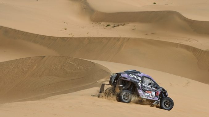 They pushed like mad and according to the sector times they were in a fight for 5th position in this stage. A broken dune that wasn’t anticipated enough provoked a huge impact and our crew was a bit knocked out for a moment, and understood quickly something was wrong on the mechanical part. They had to stop two times to fix it and lost more or less 10 minutes.