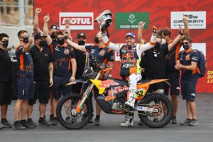 Le pilote autrichien Matthias Walkner qui s’était imposé en 2018 monte pour la 4ème fois de sa carrière sur le podium du Dakar, cette fois-ci en 3ème position. « Si on m’avait dit que je pouvais signer pour un Top 3 avant le rallye, je l’aurais pris. Il peut se passer tellement de choses sur la piste, avec autant d’heures sur la moto. On a vu que Kevin Benavides a rencontré des problèmes, Daniel Sanders a chuté, il y a toujours des soucis qui peuvent survenir. Il y a toujours des hauts et des bas, donc au final je suis super heureux que ça se soit si bien passé, même si c’était stressant. Nous sommes premier et troisième avec la nouvelle KTM, donc c’est très satisfaisant. Ce podium est presque une victoire. J’ai fait de mon mieux au cours des 12 étapes. »