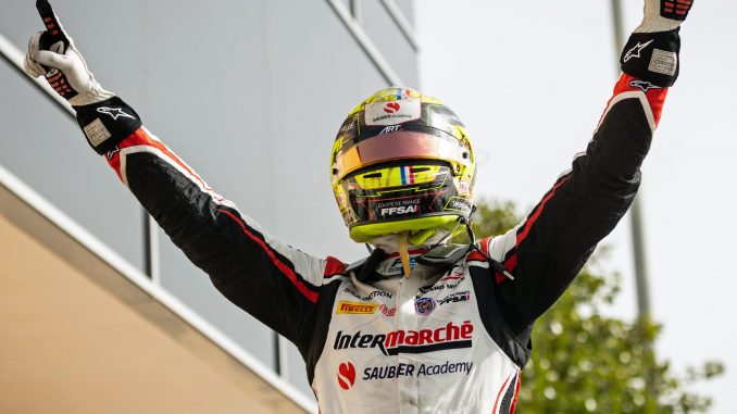 En gommes tendres, Théo ne s’est pas enflammé, mais a imprimé un rythme nécessaire et suffisant pour caracoler en tête de la course. Seule une voiture de sécurité est venue jouer les trouble-fêtes dans les derniers kilomètres, mais Théo a mis à profit son expérience et sa bonne gestion des pneus pour se tirer du guêpier sans dommage et remporter son premier succès de la saison, son 3ème dans l’antichambre de la F1 qui fait du Grassois le leader du championnat. « Cette victoire n’a pas été facile à aller chercher car j’étais sous pression avec la voiture de sécurité de dernière minute » concède Théo. « Mais la stratégie était bonne, le pit-stop également et je pense que ça nous a donné un coup de pouce car Juri Vips était un peu plus rapide que nous avec les deux types de pneus. Un grand merci donc à ART Grand Prix et à la Sauber Academy, à la FFSA et tous mes partenaires également, sans oublier ma famille. »