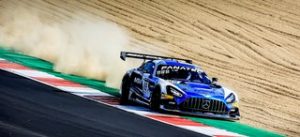 Sous un ciel un peu plombé, la première course s’annonce animée. Dès les premiers mètres, la prédiction se réalise et un accrochage envoie trois voitures au tapis dès le premier virage. Si Jules Gounon (#88) qui s’élance depuis la deuxième position sur la grille conserve sa position sans encombre, Timur Boguslavskiy rétrograde d’une place (P5) et Thomas Drouet (#87) est toujours P3 Silver (P10 du général). C’est en fait Igor Walilko (#86) qui perd gros durant ce tumultueux envol. En effet, en mordant sur l’herbe, la Mercedes-AMG glisse et touche une Audi provoquant par ricochet une sortie de piste en chaine. La #86 écope quelques minutes plus tard d’un stop and go de 10 secondes pour avoir été à l’origine de cet incident.