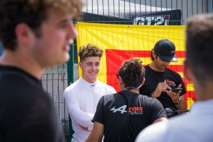 Romain Brun (Alpine A110 Cup #11) ne connaissait pas le circuit de Magny-Cours mais son tracé l’a tout de suite inspiré comme l’indique le 6e temps réalisé lors des premiers essais libres. Il réédite cette performance dans la deuxième séance d’entrainement, avec un écart sur le pilote le plus rapide réduit à une demi-seconde. Mais la journée de vendredi ne lui sera guère favorable. Un tête-à-queue dans la chicane du Nürburgring en Q1 le repousse en 21ème position sur la grille de départ de la course 1. Celle-ci s’achève prématurément pour le Périgourdin : un contact avec un autre pilote au premier passage à l’épingle d’Adelaïde a raison de son radiateur et il hérite de trois places de pénalité sur la grille de la course 2.