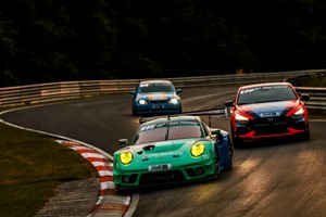 Despite light rain showers and a brief hail storm, the action among the top 15 remained uneventful until an hour before the end of the race – once again a Porsche was the focus of attention. On the approach to Döttinger Höhe, the Norwegian Dennis Olsen hit the barriers. For the KCMG 911, which was in ninth place at the time, this incident brought an early end. In the final phase, the Falken Motorsport and Huber teams brought their No. 33 and 25 entries safely over the remaining laps and concluded the Nürburgring 24-hour race in positions nine and eleven.