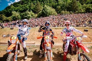 Les tops pilotes, avec les plus petits numéros, partaient ce matin après l’intégralité des pilotes amateurs. Autant vous dire que les spéciales n’avaient plus rien de vierge mais au contraire bien marquées, défoncées et radicalement différentes des 2 précédentes journées. Dans ces conditions difficiles, que l’on peut retrouver en EnduroGP, Garcia s’est montré intraitable en remportant 4 des 5 chronos du jour. Vendredi et samedi les écarts étaient plutôt mesurés avec Andrea Verona mais en ce dimanche, l’espagnol a montré sa supériorité face le pilote transalpin. Josep Garcia fait le grand chelem : vendredi, samedi et dimanche ! Verona a tout de même a réussi à aller chercher la SP4 mais devra se contenter de la seconde place du général non sans avoir démérité, en exerçant une pression constante durant 3 jours sur la KTM officielle mais ça n’aura pas suffi pour faire flancher Garcia. Quelle belle troisième place de Till De Clercq. Encore une fois, dans les conditions différentes du jour, le pilote Dafy KTM a fait preuve d’une régularité impressionnante (3/2/4/5/3). Troisième des 3 journées, il mérite largement de monter sur le podium final pour la première fois de sa carrière ici à Mende. Pour l’anecdote qui en dit long, c’est aussi le seul à avoir pris une SP au duo Garcia/Verona.
