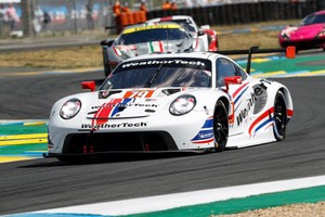 In the GTE-Am class, the eight Porsche 911 RSR put on an impressive show in the first two hours of racing. At times, the customer teams’ cars locked out the first six places as well as positions eight and nine. However, the 911 racers from Weissach were separated due to driver and tyre changes during the second round of pit stops. Julien Andlauer showed particularly impressive form in the action-packed race on the 13.626-kilometre circuit. At the wheel of WeatherTech Racing’s No. 79 car, the Frenchman held the lead and gradually built an advantage of over 40 seconds. In the starting phase, Andlauer spent 2:45 hours at the wheel of the car.