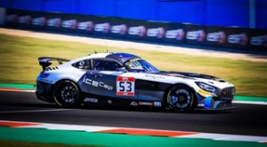 Ainsi, Jean Luc Beaubelique et Eric Debard reprennent la piste respectivement P1 et P2. Mauro Ricci est toujours P2 AM et Pascal Gibon P8 de la catégorie. Les feux repassent au vert alors qu’il ne reste que 15 minutes. Les pilotes sont un peu sous pression et 2’ plus tard, Pascal Gibon est victime d’un accrochage, poussé dans un premier temps puis percuté par la #25. La Mercedes-AMG rejoint les stands au ralenti mais les dégâts sont trop importants pour continuer.