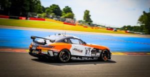 Mais après seulement 5 minutes de course, soit avant la fin du deuxième tour, le Safety-car entre en piste consécutivement à un incident dans le Raidillon. Quand les feux repassent au vert, 14 minutes se sont déjà égrenées. Contrôlant solidement la course, Hugo Chevalier (#87) hausse le ton et se montre même le plus rapide en piste lors de cette phase de course. C’est aussi à ce moment que la première sanction tombe… La #87 écope de 5 » de pénalité (ajoutées après la course) pour avoir causé une collision. En fait, c’est bien la Mercedes-AMG GT4 de Hugo Chevalier qui s’est fait percuter au restart. Cette pénalité sera d’ailleurs retirée ultérieurement.