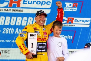 For the second time this season after his earlier success at Circuit Paul Ricard at the end of May, Tom Coronel has won a race in the TCR Europe Series. At the Nürburgring, where the series was part of the support package of DTM for the third time this year, Coronel started from pole position with the Audi RS 3 LMS in DHL livery, run by the Comtoyou Racing team. He led all the way from lights to flag and crossed the finish line as the undisputed winner. As a surprise, his son Rocco, who had accompanied him, was allowed to hand over the winner’s trophy to his father after the race. « Another win, number two in the pocket, a great feeling, » a buoyant Coronel said afterwards.