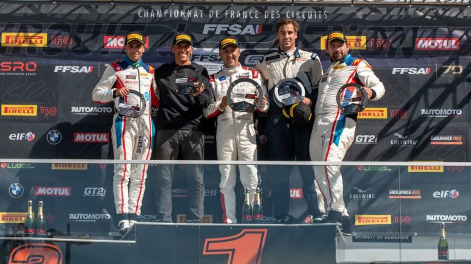 Dans le lointain sillage du leader, un trio de BMW se disputait les places d’honneur. Si Carla Debard (#21 – Debard Automobiles by Racetivity) était clairement la plus rapide et croisait le drapeau à damiers au 2e rang devant Jean-Mathieu Leandri (#18 – VSF Sports – Amplitude Automobile) et le duo Guillaume Giorza-Benoît Eveillard (#41 – VSF Sports – Amplitude Automobile), l’application de sa pénalité la repoussait finalement en 6e position.