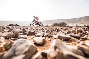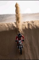 Le lendemain de Tan-Tan à Agadir, Romain Duchene ne s’est pas emballé, toujours concentré, il a avalé les kilomètres enseignants : « J’ai pris du plaisir sur la moto. J’ai bien commencé en me détachant d’un groupe de pilotes qui tâtonnait en navigation. Une fois le champ libre durant 130 km que j’ai couvert en 1 heure, c’est dire la vitesse prise, je suis arrivé sur un way-point que j’ai trouvé facilement étant sur la bonne piste. Je double 10 gars, ils m’ont vu et ont pris ma roue ! Le point suivant, à mon tour de perdre 10 minutes à le chercher. Au km275, à la sortie des dunes, un WP au cap était difficile à trouver, j’ai douté au point de me laisser distraire par une auto au loin que j’ai pris en chasse. Erreur, j’aurais dû suivre mon instinct… j’étais sur la piste du rallye et j’ai perdu 20 minutes avant de retrouver mes traces ! Seule l’expérience compte. J’apprends kilomètres après kilomètre, c’est le prix ! »