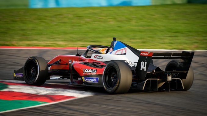 Le Thaïlandais est à nouveau l’auteur d’une impulsion qui lui permet de franchir le premier virage en tête, face au champion en titre. Malgré l’intervention de la Safety Car à la fin du deuxième tour, provoquée par la sortie dans le bac de David Kullmann et la F3R #25/Sports-Promotion et une relance à gérer par la suite, Tasanapol Inthraphuvasak est venu à bout des 20 minutes de course pour s’imposer avec la manière au volant de la F3R #14 du Graff. Du haut de ses 16 ans, il décroche ainsi sa quatrième victoire en cinq courses disputées, en devançant Nicolas Prost avec 2 secondes, tandis que Shannon Lugassy (CMR) retrouve le chemin du podium après une belle passe d’armes avec l’un des pilotes du Graff, Loris Kyburz.