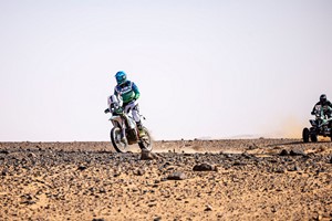 Mishal Al-Ghuneim moved into a useful 20min 45sec lead over Qatar-based Aussie Martin Chalmers in the motorcycle category. The Saudi KTM rider won the stage comfortably and his cause was further aided when Chalmers picked up a three-minute time penalty for over-speeding in a restricted zone. Fawaz Al-Toami came home in third place.