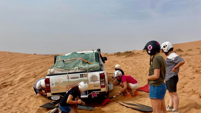 Après ces péripéties, toutes les participantes ont rejoint le bivouac à temps pour participer à l’après-midi solidaire avec l’association Enfants du Désert, le second moment fort de la journée, avant l’étape de nuit. Le journée n’est pas finie !