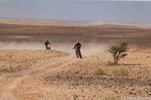 Stéphane Zosso : « Notre premier tour s’est bien passé, entre piste rapide, gros oued agréable. Nous étions troisième. Mais le second tour a été plus difficile. Près des petits puis des grosses dunes, j’ai décidé de faire un peu de débroussaillage dans la végétation marocaine. Je me suis jeté avec le Can-Am dans une zone avec des arbres. J’ai mis 6-7 minutes à me sortir de cet endroit. »