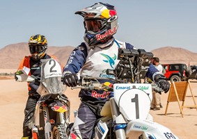 Saudi Arabia’s top driver Yazeed Al-Rajhi and his German co-driver Dirk von Zitzewitz top an impressive entry of 25 cars, 36 motorcycles and eight quads in the FIM section, in addition to 32 cars and one truck in the National Baja category.