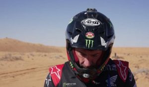 « C’était une étape très difficile. On s’est perdu ce matin, ce qui m’a coûté un peu de temps, et puis sur la fin il y a eu cette chute de Barreda juste devant moi. J’ai tapé dans sa moto et je me suis arrêté cinq ou six minutes pour l’aider car il était un peu sonné. L’un dans l’autre je ne fais pas une mauvaise étape. Je n’ai pas perdu tant de temps que ça et il reste encore plein de journées devant nous. »