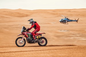 After one week of racing and eight stages (one canceled) all contenders in the top positions are incredibly close to each other. Monster Energy Honda Team is playing its role reaching this point with a solid performance from all riders. Today Chilean Pablo Quintanilla was once again the fastest one in fourth position, followed by Frenchman Adrian Van Beveren (5th) and Chilean Jose Ignacio Cornejo (12th). In the overall standings, Quintanilla is ranked 5th with a gap of just 2:45 minutes to the leader, Van Beveren is in 6th position (2:49 minutes gap to the leader) and Nacho Cornejo ninth (19:32 minutes gap to the leader).
