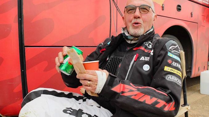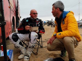 Hier, avant d’attaquer les 400 km de liaison vers Riyadh, Franco a pris le temps de se restaurer, épuisé par cette huitième étape truffée de pierres et de fausses pistes. « C’était d’autant plus dur avec les pneus Dunlop qu’on n’a pas vraiment eu le temps de développer, glisse-t-il. Sans compter qu’aujourd’hui je suis le seul pilote de l’équipe encore en course. » S’il lui reste encore six étapes à affronter, Franco estime que le plus difficile est derrière lui : « Ce sont les cinq premières journées qui ont été très dures. Les pierres, l’eau, le froid… On a tout eu. Il y a eu un moment où j’étais vraiment fatigué, mais maintenant ça va mieux. La journée de repos sera tout de même bienvenue. » Cette année, Franco a choisi de courir avec le #67. « Cela me permet chaque jour de me rappeler de mon âge », s’amuse-t-il.