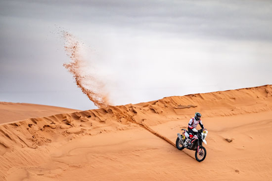 Franco Caimi: « The first stage after rest day is done. I felt really good on the bike today. It was a complete stage today – dunes, rocks, and some tricky navigation. I lost some time trying to find a waypoint, but eventually I found it and made up for the lost time. Super happy to have completed the stage, and I’m looking forward to tomorrow. »