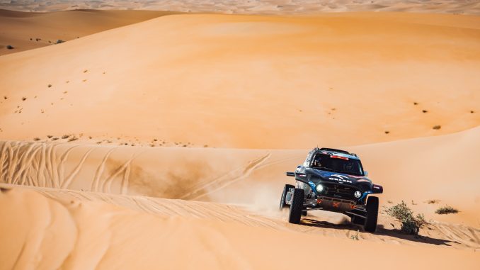 The tenth stage to Shaybah sent the participants on a 114 kilometre detour into the « Empty Quarter ». A foretaste of the next two stages, which will also be held completely in the sandy desert area. Today, Jakub « Kuba » Przygonski and Armand Monleon secured sixth place in the MINI JCW Rally Plus. Sebastian Halpern and Bernardo « Ronnie » Graue finished twelfth. The two MINI JCW Buggy crews Denis Krotov / Konstantin Zhiltsov and Sheikh Khalid Al-Qassimi / Ola Floene finished the day in 17th and 23rd place.