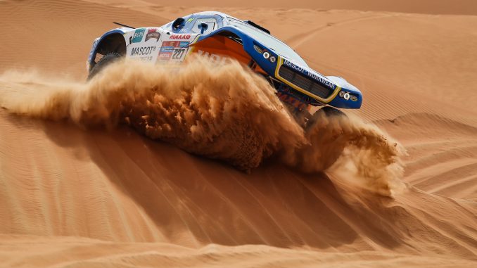 In the twelfth stage of the Dakar Rally 2023 it was all about tire management. Too hard and the car got stuck in the sand or could not come up on a dune, too soft and they could pop or come off. Tom Coronel proved to be an excellent tire manager in these 185 kilometres, to Tim’s joy and satisfaction, who could therefore make full use of his steering skills.