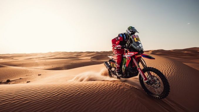 Monster Energy Honda Team surpassed this physical and mechanical extreme endurance test and reached Al-Hofuf bivouac safely on their Honda’s CRF 450 Rally. After yesterday’s stage win, José Ignacio Cornejo was the first to leave and had the mission to open the track. The Chilean finished with the best 14th time (12th in GP), with a gap of 07:42 minutes for the leader – a performance that allowed him to keep his 8th position in the overall standings. Pablo Quintanilla was 8th (6th in GP) with a gap of 03:33 minutes to the leader – he also kept his position in the overall standings (5th place). Adrien Van Beveren was all stage fighting for the top standings and finished in fourth position, also keeping his fourth place in the overall standings.