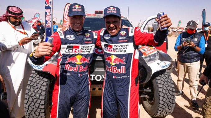C’est dans leurs poches ! Nasser Al-Attiyah et Matthieu Baumel remportent leur 5ème victoire sur le Dakar. Le pilote qatari a assuré durant la seconde semaine pour maintenir plus d’une heure d’avance sur l’ensemble de ses chasseurs. Un succès qui souligne la fiabilité de leur Toyota Hilux et l’impressionnante maîtrise et intelligence dont ils firent preuve sur l’ensemble de l’épreuve comportant 14 étapes.
