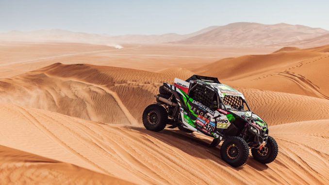 The South African duo of Geoff Minitt and Gerhard Snyman enjoyed their best Dakar finish in 12th overall, while Dutch female driver Anya van Loon teamed up with Ukraine’s Dmytro Tsyro to reach Dammam in 14th.