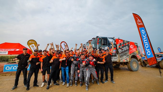 A l’issue de la dernière étape du Dakar, dimanche 15 janvier, Janus Van Kasteren, pilote du Boss Machinery Team De Rooy IVECO, a remporté le Rallye Dakar 2023 catégorie camions, avec plus d’une heure et quatorze minutes d’avance sur son plus proche rival. Ses coéquipiers Martin et Mitchel Van Den Brink du team De Rooy ont ​​respectivement terminé troisième et quatrième.