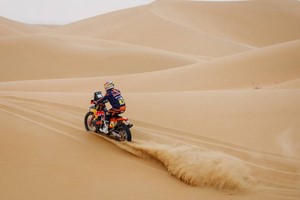 Chez les motos, Toby Price impose sa KTM en spéciale et remonte sur le podium du général qui reste entre les mains d’Adrien Van Beveren, devant son coéquipier du HRC Pablo Quintanilla.