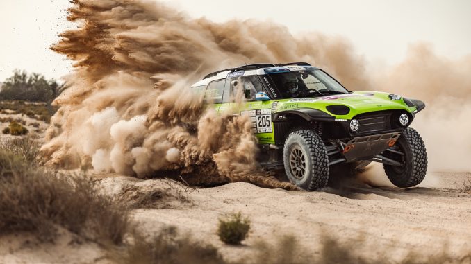 Sand and dunes were the main ingredients of the Abu Dhabi Desert Challenge, the second event of the FIA World Rally Raid Championship. Just the right mixture for the MINI John Cooper Works Rally Plus. Sebastian Halpern and Bernardo ‘Ronnie’ Graue were able to add important points to their WRC account with fourth place in the T1 classification. Sheikh Khalid Al-Qassimi finished his home rally in fifth place (T1 classification) together with Ola Floene. Denis Krotov and Konstantin Zhiltsov had worked their way up to third overall, but an accident on the last day put an end to their podium dreams.