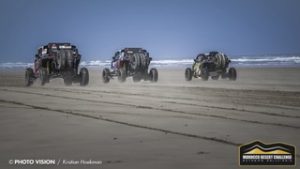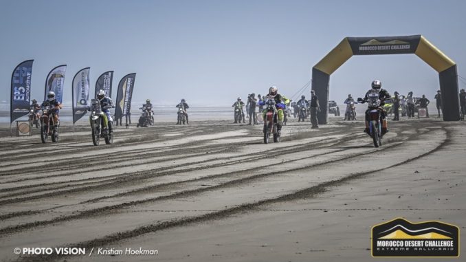 Comme le veut la tradition du Morocco Desert Challenge, les concurrents ont pris le départ par groupe aux alentours de 10h45. Les motos se sont d’abord lancées 10 par 10. Les SSV ont suivi 3 par 3, puis autos et camions 2 par 2. Un beau spectacle sur la plage et les meilleurs pilotes se sont vite placés aux avant-postes pour éviter la poussière soulevée.