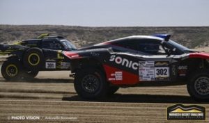 356 kilomètres plus loin, l’arrivée était jugée sur le bivouac d’Assa ! La chaleur sur un parcours varié, typique des terres marocaines, ont éprouvé la majorité des concurrents tous ravis d’arriver à bon port… Surtout ceux qui ont rencontré quelques soucis comme Cédric Petit (SSV #270) : « C’était une vraie journée galère pour Geoffroy Noel de Burlin mon co-pilote et moi. Nous avons cassé un axe de tirant arrière, il nous a fallu une heure pour le réparer. Après le ravitaillement la vis s’est desserrée… Mais cette machine est un Phoenix qui renait de ses cendres ! Il fait très chaud, j’ai dû lever le pied pour ne pas faire monter la température. Sinon la spéciale était sympa, nous sommes rentrés, maintenant ravitaillement pour le SSV et pour nous ! »