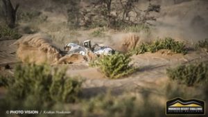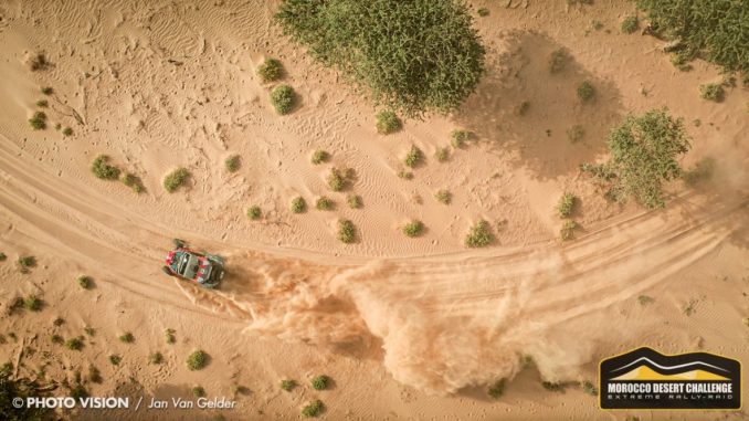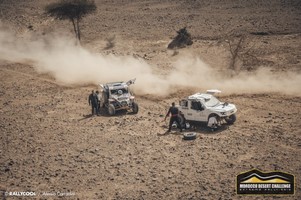 Jean-Marie Lurquin l’avait annoncé dans ses notes d’ouverture, la 3ème étape a rassasié tous les concurrents parfois pour le meilleur, et d’autres fois pour le pire… Navigation délicate, pistes cassantes et poussiéreuses… Les pièges étaient nombreux et sollicitaient de l’attention à chaque kilomètre. Encore une journée éprouvante qui a pourtant ravi les premiers concurrents arrivés au bivouac en début d’après-midi. C’est le cas de Jérôme Pélichet et de son co-pilote Pascal Larroque (#303 – Raid Lynx) : « Nous avons eu 2 difficultés sur le road-book dont un passage compliqué où nous sommes sortis d’un oued trop tard. Nous n’avons pas pu trouver la bonne trace… C’était cassant à cause des cuvettes et des saignées, nous avons crevé, une vraie spéciale marocaine ! Ça demandait beaucoup d’attention au volant, il ne fallait rien lâcher. Le top c’est quand même le sandwich au milieu, on ne peut pas faire mieux ! »