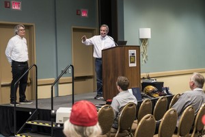 Le sujet de la sécurité des véhicules électrifiés arrivait au bon moment et il a attiré ceux qui devront intervenir sur les circuits. « Nous avons ici aujourd’hui une demi-douzaine de commissaires techniques de la SCTA, des directeurs de SRO, de la Formula Drift et de la Formule E FIA, des personnes du circuit Thermal et quelques pilotes Dragster et chacun d’entre vous fait face à la problématique de travailler en sécurité sur des véhicules électrifiés haute performance » déclarait l’organisateur de la conférence Don Taylor. « Profitez de l’occasion pour faire connaissance, échanger des idées et apprendre les uns des autres ». Et c’est ce qu’il s’est passé. L’échange d’expérience a bien eu lieu lors des séances de questions/réponses et a perduré bien après la fin de l’événement.
