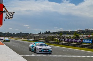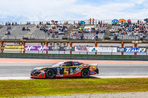 CAAL Racing’s Marc Goossens rounded out the overall podium in third at the end of a roller coaster race for the experienced Belgian, who was fighting for position inside the top-5 all day long. Vittorio Ghirelli also had his hands on the trophy at the beginning of the last lap, but the Italian was shuffled down the order after a contact with Tziortzis that sent #5 EuroNASCAR FJ in the gravel at turn 1. Tziortzis would rejoin the race and bring home a 13th place finish, while Ghirelli received a post-race penalty that dropped him down to 16th position.