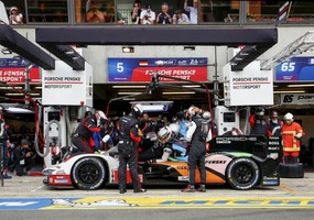 Heavy rain on parts of the circuit then shook up the field again and led to several slips and slides. This triggered another long stint behind the safety car. After a little more than four hours of racing, the No. 6 Porsche is running in second place behind the lead car, the No. 75 sister car is in fifth, the Jota Porsche in sixth and the No. 5 racer in tenth.