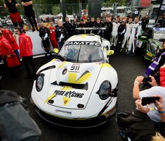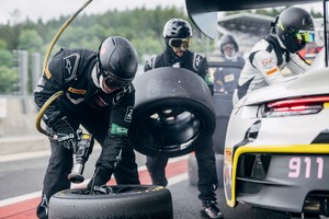 After the opening phase of the 24-hour race at Spa-Francorchamps, Porsche’s customer teams campaigning the 911 GT3 R continue to hold promising positions. By the four-hour mark, Manthey EMA’s so-called ‘Grello’ racer had worked its way up the order from 14th on the grid to second. At 9:17 pm, Julien Andlauer swept into the lead. Currently, six of the 14 Porsche 911 are still on the same lap as the leader.