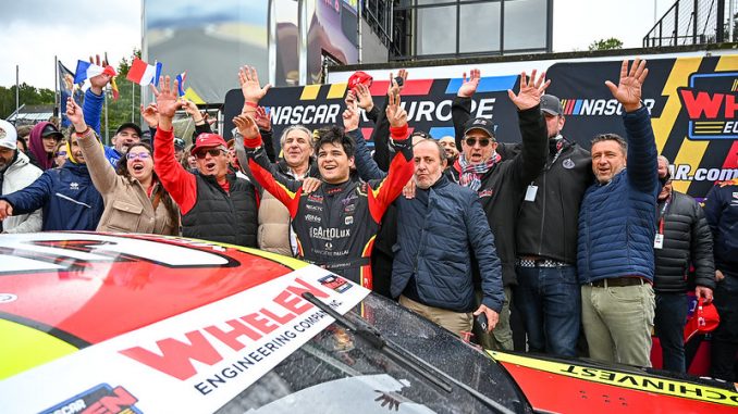 Paul Jouffreau est arrivé en Champion EuroNASCAR 2 sur la Victory Lane des NASCAR Whelen Euro Series et les fans français ont accueilli le pilote de 19 ans en entonnant l’hymne national français. Le pilote de la Ford Mustang n°3 de RDV Compétition a pris la tête du classement général au terme d’une bataille acharnée contre Vladimiros Tziortzis, Alberto Naska et Gil Linster au cours d’une saison NWES 2023 pleine de rebondissements. Pour Jouffreau score ainsi son premier titre EuroNASCAR en carrière, et c’est aussi le premier titre pilotes pour son team, RDV Compétition, depuis 2018.