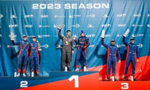 La course 1 de la finale de la Ligier European Series s’est tenue samedi 21 octobre en milieu de matinée. Malgré sa violente sortie de piste qui l’a empêché de participer aux essais libres 2 et aux deux séances de qualifications, le Champion JS P4 2023 Mihnea Stefan s’offre une première victoire à Portimão. Julien Lemoine dans la #42 d’ANS Motorsport scelle son titre en JS2 R en passant la ligne d’arrivée avec plus d’une minute d’avance sur ses concurrents.