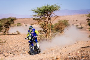 Lorenzo Santolino a réalisé de bonnes performances, terminant régulièrement dans le top 7. Lors de la 4ème étape, une spéciale longue de 343 km de Zagora à Merzouga, alors qu’il avait pris un bon départ le matin et qu’il pointait en 7ème position de l’étape et 7ème au général, après le kilomètre 277, une pierre a heurté sa roue arrière et a plié la couronne. La chaîne a déraillé et il a dû démonter sa roue en plein désert, enlever le pignon et essayer de le redresser entre deux pierres pour pouvoir rouler sans que la chaîne ne déraille. Il a perdu plus d’une heure dans l’opération, mais a pu repartir et terminer l’étape.