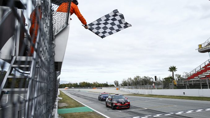 Sur ses terres, Jordi Palomeras s’offrait sa première victoire de l’année en Clio Cup España. Le Catalan l’emportait devant Adrian Schimpf et Alex Royo (Team VRT), promu sur le podium après la pénalité de dix secondes infligée à Alejandro Schimpf (AST Competition) pour sa responsabilité dans un incident avec Alexandre Finklestein (GPA Racing). Adrian Schimpf consolide ainsi son avance en tête du classement général ainsi qu’en Challengers Cup et n’aura qu’à franchir l’arrivée demain pour s’adjuger les deux titres. En parallèle, Jérémy Bordagaray (Milan Compétition) surmontait un accident dans la première séance d’essais collectifs pour s’imposer en Racers Cup, dont il s’est déjà assuré la couronne, devant Alejandro Romero (Team VRT) et Jean-Louis Carponcin (Teamalcar).