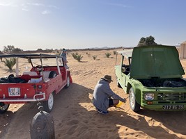 Lucie : Je ne connaissais ni le désert, ni la Mehari. Cette façon d’associer les deux m’a permis de découvrir les joies du désert et les couchers de soleil sur les dunes de Merzouga.