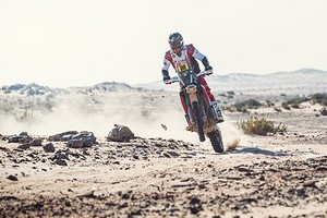 Ross Branch: « Stage 4 was also a tough one. Navigation was tricky this morning, so just took it easy and made sure I got everything right. I had a small crash at around 40 kms, but I was okay. We pretty much all stayed together until refuel. And towards the last, around 20 kms before the finish I had one more small crash. I think I should focus on staying on the bike for the next week! But otherwise, everything’s good today. »