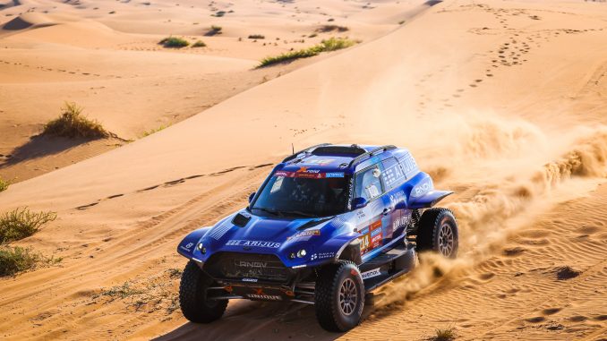 Vaidotas Zala and Paulo Fiuza held a place in the top 10 in the MINI JCW Rally Plus for a long time. The Lithuanian was able to work his way forward in the overall standings. But on the 48h chrono stage, the vehicle was so badly damaged when it hit a dune that he had to retire from the stage early.