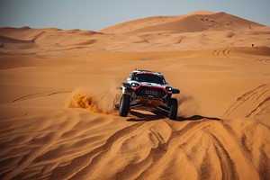 Vaidotas Zala and Paulo Fiuza held a place in the top 10 in the MINI JCW Rally Plus for a long time. The Lithuanian was able to work his way forward in the overall standings. But on the 48h chrono stage, the vehicle was so badly damaged when it hit a dune that he had to retire from the stage early.